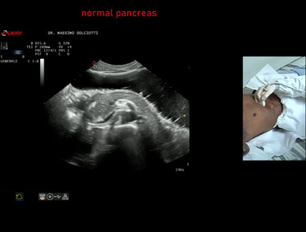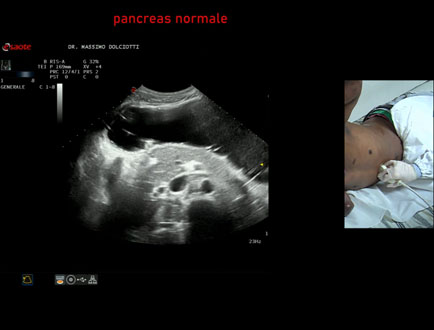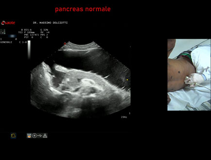 Data inserimento: 07 /11/2007Ecografie del: 19/04/2005 Strumento: Esaote Megas Età paziente: F 9 anni Le immagini ed il video documentano il pancreas di regolare ecomorfovolumetria.Presentazione: Dr. Massimo Dolciotti - Ancona Elaborazione digitale: Andrea Dini - Ancona