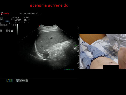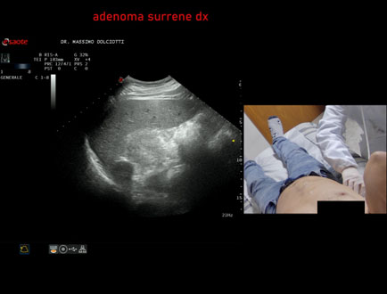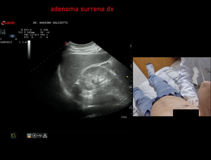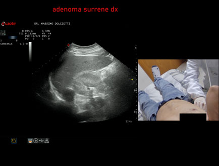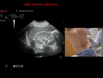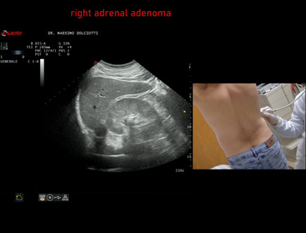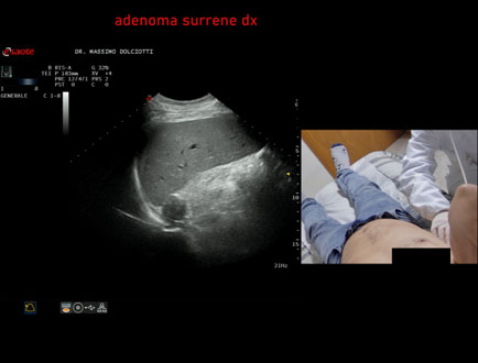 Età Paziente: M 49 anni Motivazione dell'esame: riscontro occasionale Commento all'esame: le immagini ed il video documentano in regione surrenalica destra, formazione ipoecogena a margini definiti, da ricondurre, come prima ipotesi, ad adenoma surrenalico. Conclusioni: adenoma surrenalico destro (right adrenal adenoma). In collaborazione: Dr.ssa Marica Manfredi - Ancona, Dr. Ilir Qose - Ancona Presentazione: Dr. Massimo Dolciotti - Ancona Elaborazione digitale: Andrea Dini - Ancona