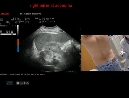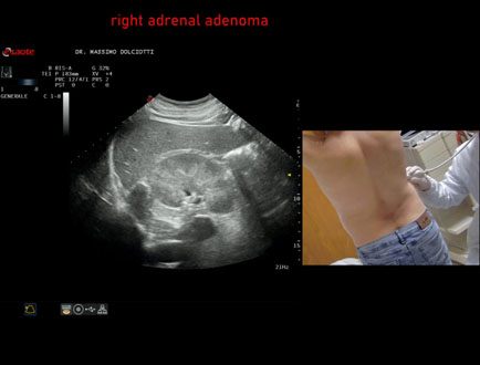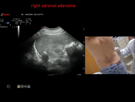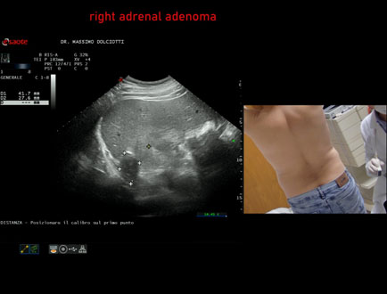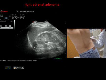 Data inserimento: 02/09/2016 Ecografia del: 31/08/2016 Strumento: Esaote MyLab Class C Sonda: Convex Multifrequenza 1-8 MHz Età Paziente: F Commento all'esame: piccolo aldosteronoma in donna ipertesa ipokaliemica. Realizzazione: Dr. F. Pietro Tarini - Gubbio (PG) Presentazione: Dr. Massimo Dolciotti - Ancona Elaborazione digitale: Andrea Dini - Ancona